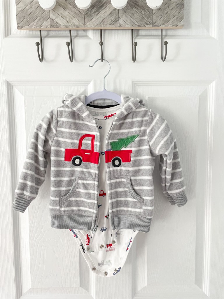I can’t tell you how many brand-new, holiday-themed outfits I’ve found thrifting online. I can only assume the parents either purchased or received the items based on an incorrect assumption of how big their child would be when a specific holiday rolled around. I quickly learned that Alden was always about one size ahead of his actual age. This has helped me snag many holiday pieces with tags still attached.